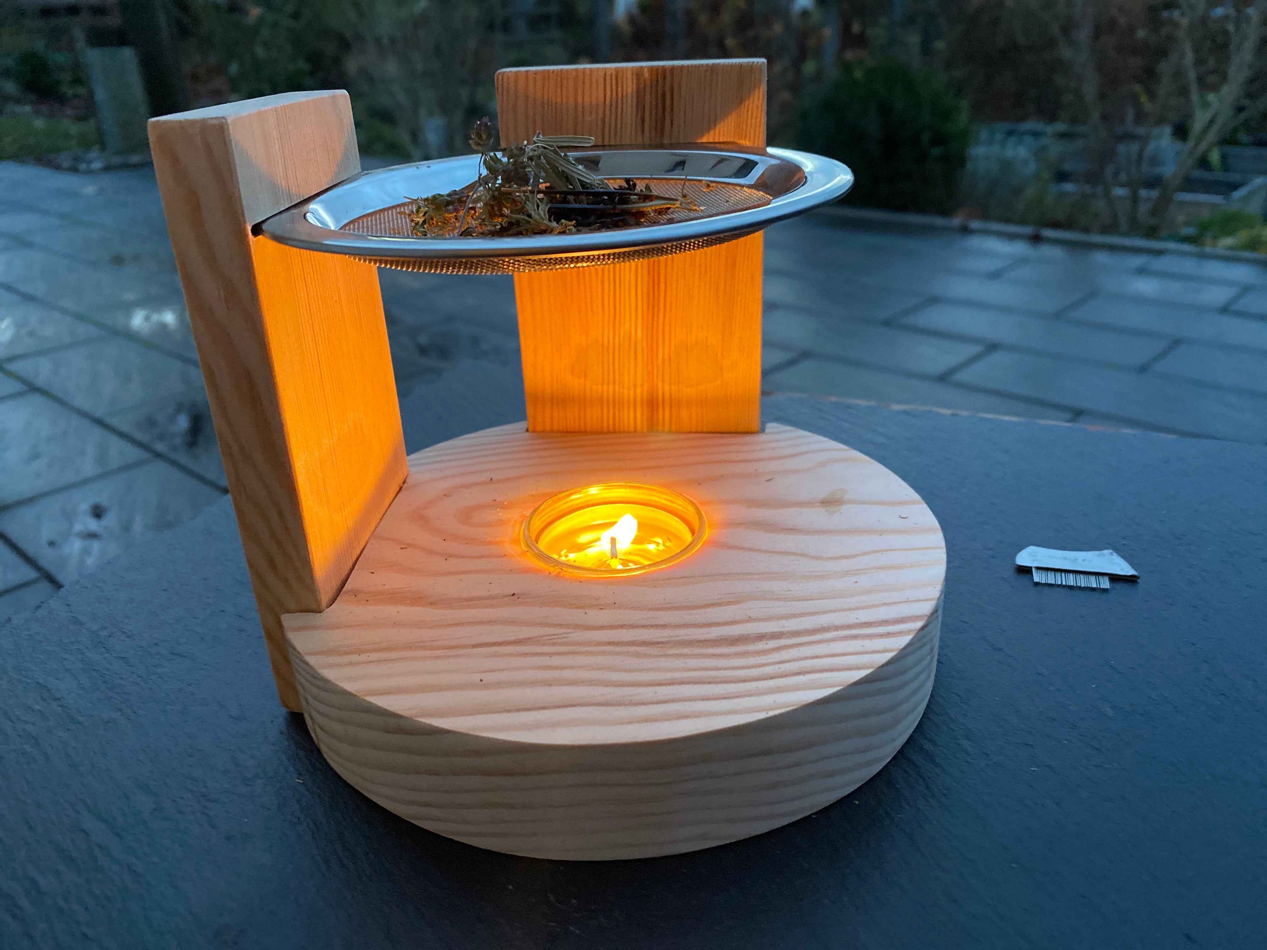 Räucherstövchen aus Kiefernholz mit Räuchersieb aus Edelstahl!